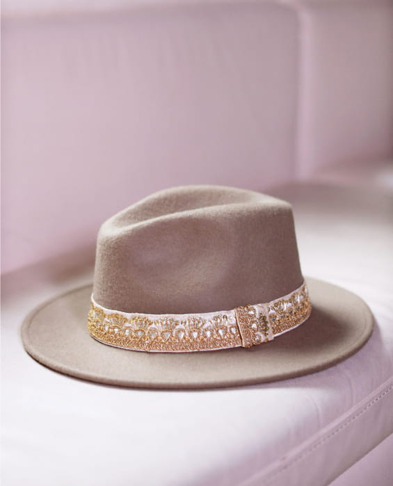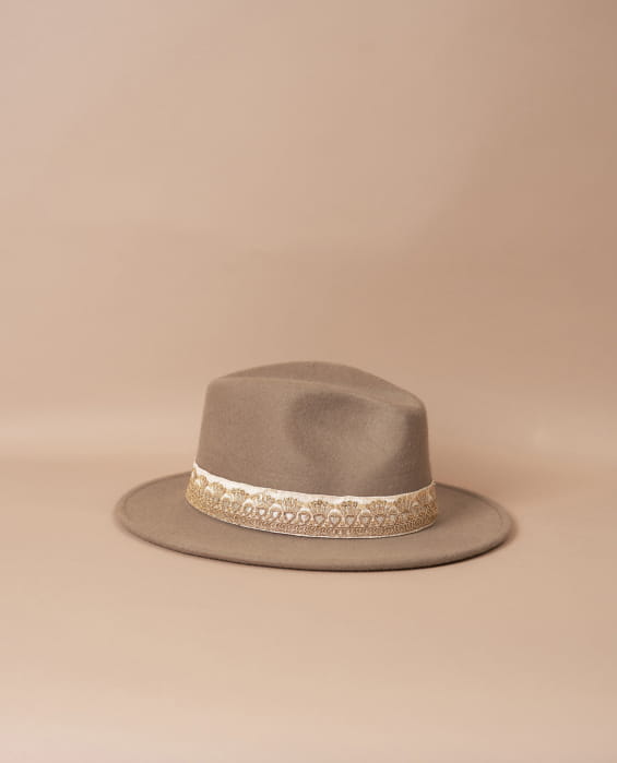 To bring our little Maradji touch, our Jim Taupe felt hat is embroidered with fine beige golden-colored braid.
