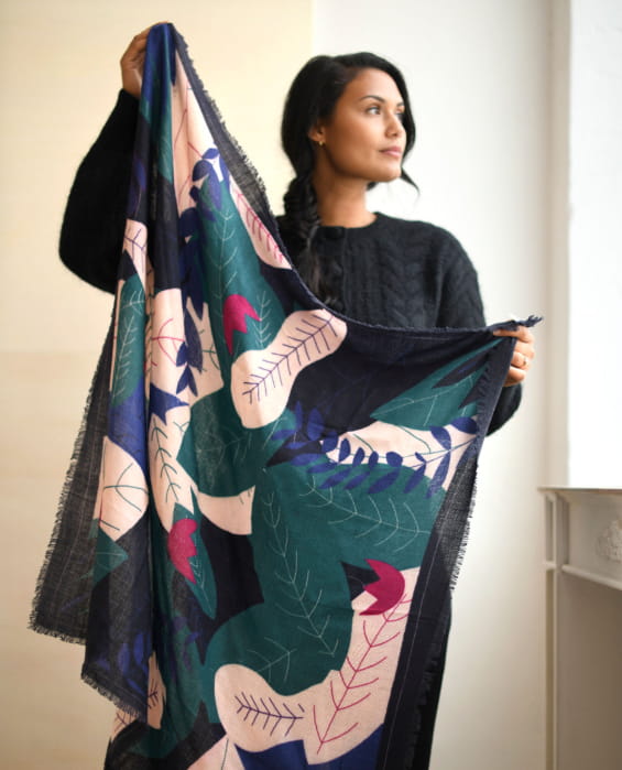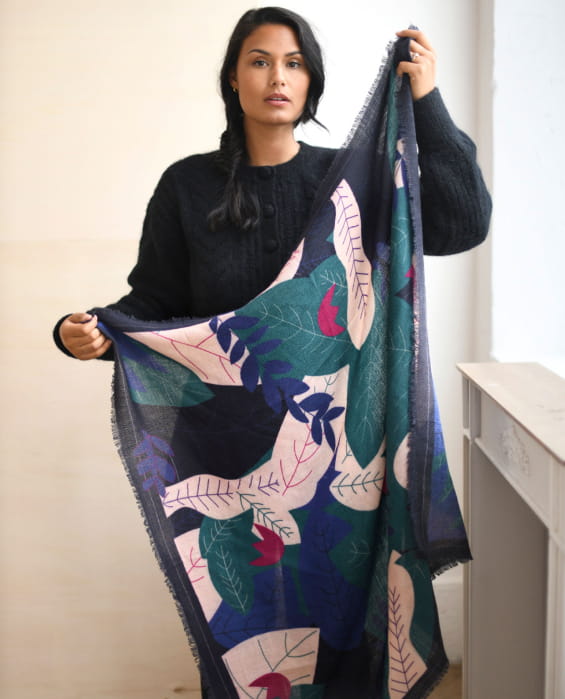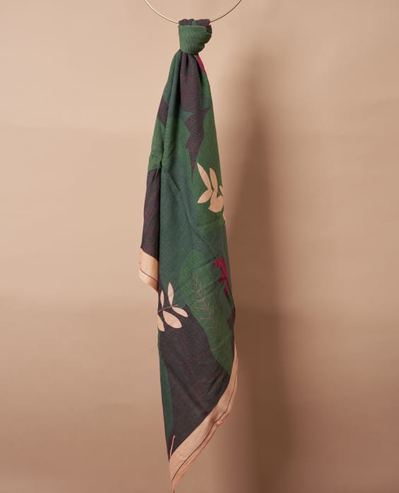 In our workshops in Jaipur, our artisans use their age-old know-how to make you a little masterpiece: a square scarf made from wool and modal, a fiber transformed from wood. Unique design drawn by the designer in a jungle spirit, enough to give quite a character to your look!