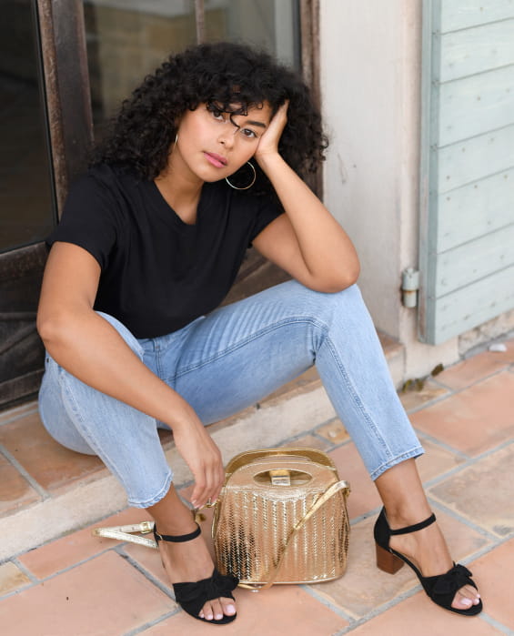 It's pretty simple after all, gold, bronze and silver shades are said to go easily with all colors and patterns. Nevertheless think that this piece is sparkling then the key is to opt for a sober look, it will highlight it perfectly. Play with materials and colors. A wide shirt belted, a blouse and flowing pants, ... The choice is vast!