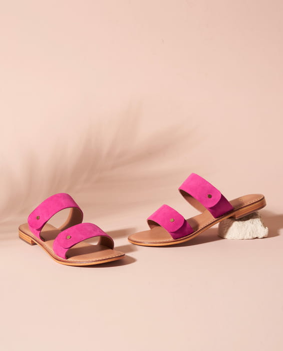 This summer, our flat sandals family welcomes the lovely Perla! All in leather, this pretty double straps mule will be your trendy ally for all your pool parties! Just like every Maradji shoes, Perla was designed in Paris and made in Portugal, with carefully selected velvet or cracked leather (depending on the color). Don’t worry: these mules may have come straight from Europe, with their Moroccan sandal look, they will give your feet an exotic, dancing gait. Their leather sole and flat heel will ensure unequaled comfort, perfect balance and simply bohemian and elegant look. We don’t want to boast, but we’re sure you’ll never get tired of wearing them!