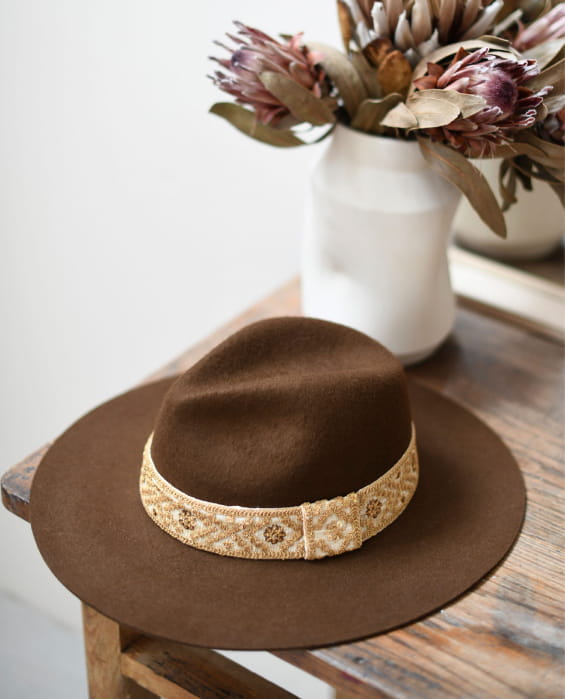 Wool felt is thick and yet fragile. It is advisable not to fold your hat to maintain its original shape.